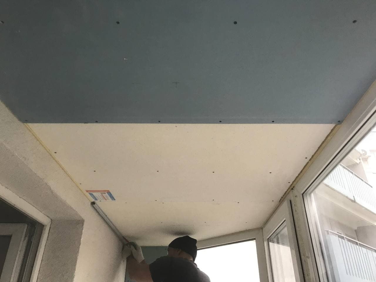 Ещё одним пожеланием Заказчика - выполнить звукозиоляцию лоджии, а именно сделать потолок. Был выбран каркасный звукоизоляицонный потолок на виброизолирующих подвесах Виброрфлекс. Заказчик планировал установить встроенные светильники, чтобы не ухудшить звукоизоляцию всей конструкции нами были изготовлены специальные звукоизоляционные короба под размер свтеильников. Короб остаётся внутри конструкции, через него выводится провод, а в отверстие вставляется светильник, далее делается финишная отделка. Работыбыли выполнены за два дня.